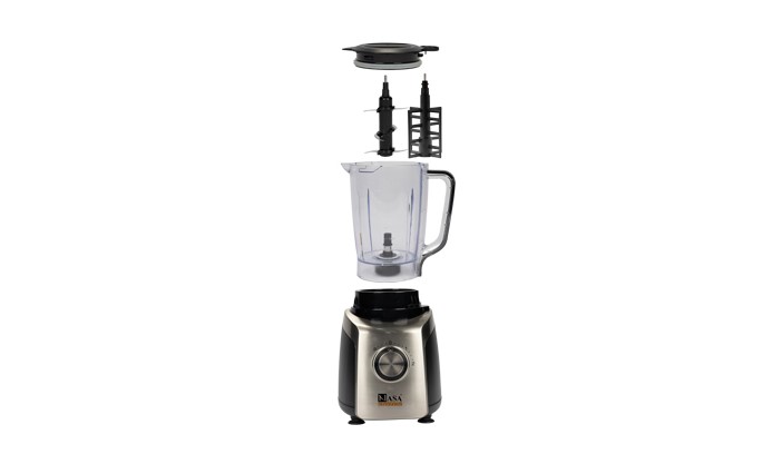 مخلوط کن ناسا الکتریک NS-1963 دستگاهی است که دارای دو کاربرد مختلف میباشد. این محصول از بدنه یا پایهای اصلی تشکیل شده که پارچهای مخلوط کن و آسیاب بر روی آن قرار میگیرند. در واقع بدنه این مخلوط کن و آسیاب از استیل و پلاستیک تشکیل شده است، که کیفیت و استحکام بالایی دارد. بدنه دستگاه دارای پایههای ضد لغزش بوده و به هنگام کار کردن حتی در سرعتهای بالا نیز خبری از تکان خوردن و حرکت دستگاه نخواهد بود. پیچ ولومی به عنوان دکمه انتخابگر بر روی بدنه دستگاه طراحی شده است، که برای تنظیم سرعت استفاده میشود. به همراه این مخلوط کن یک پارچ بزرگ 1.7 لیتری و یک ظرف آسیاب 0.5 لیتری عرضه میشود.